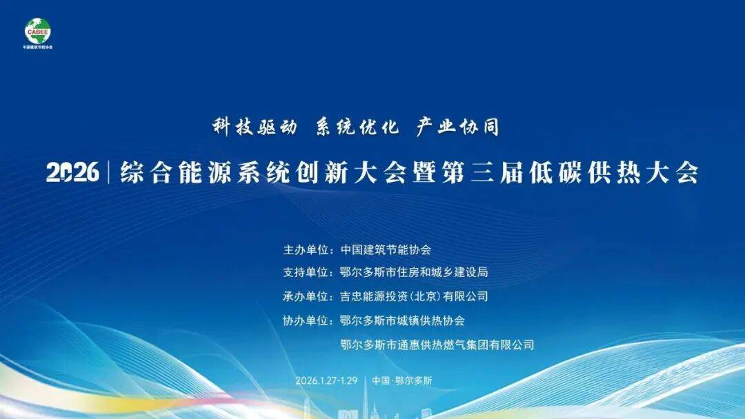 2026年1月27日至29日,由中国建筑节能协会主办,鄂尔多斯市住房和城乡建设局支持,鄂尔多斯市城镇供热协会、鄂尔多斯市通惠供热燃气集团有限公司协办的“综合能源系统创新大会暨第三届低碳供热大会”,在内蒙古鄂尔多斯市成功举办。