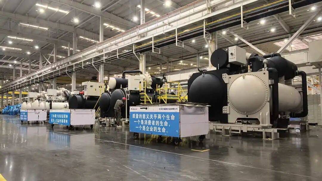 长沙机场项目规划三星级绿色建筑目标,格力机组与此完美契合。能效超国家一级标准,较传统机型节能30%以上。采用环保冷媒,低噪音排放,全生命周期低碳运行。机组适配大温差工况,优化系统压降,兼顾高效与稳定,将绿色基因融入智慧建筑,助力运营成本下降,践行“双碳”目标,为绿色制造注入硬核科技动能。据测算这7台机组每年可减少二氧化碳排放约1800吨,相当于在机场周边种植了10万平方米的森林。