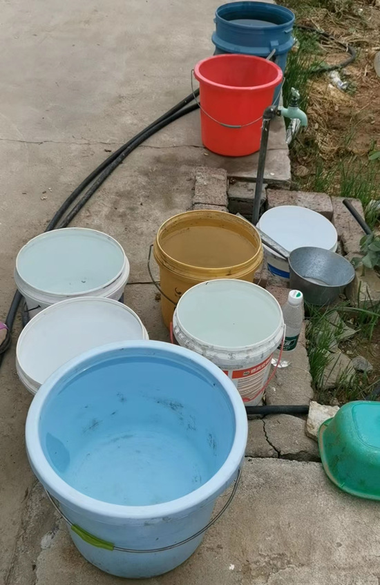 近期,该村民向人民网反映,村里吃不上水,一直反映没解决。7月上旬,记者走访近20户村民发现,由于自来水不能正常供应,家家要用水桶储存水,九成村民要用增压泵从自来水管里往外抽水。多名村民表示,村里装上自来水后,只有白天供水,夏天供水不足问题较为严重。